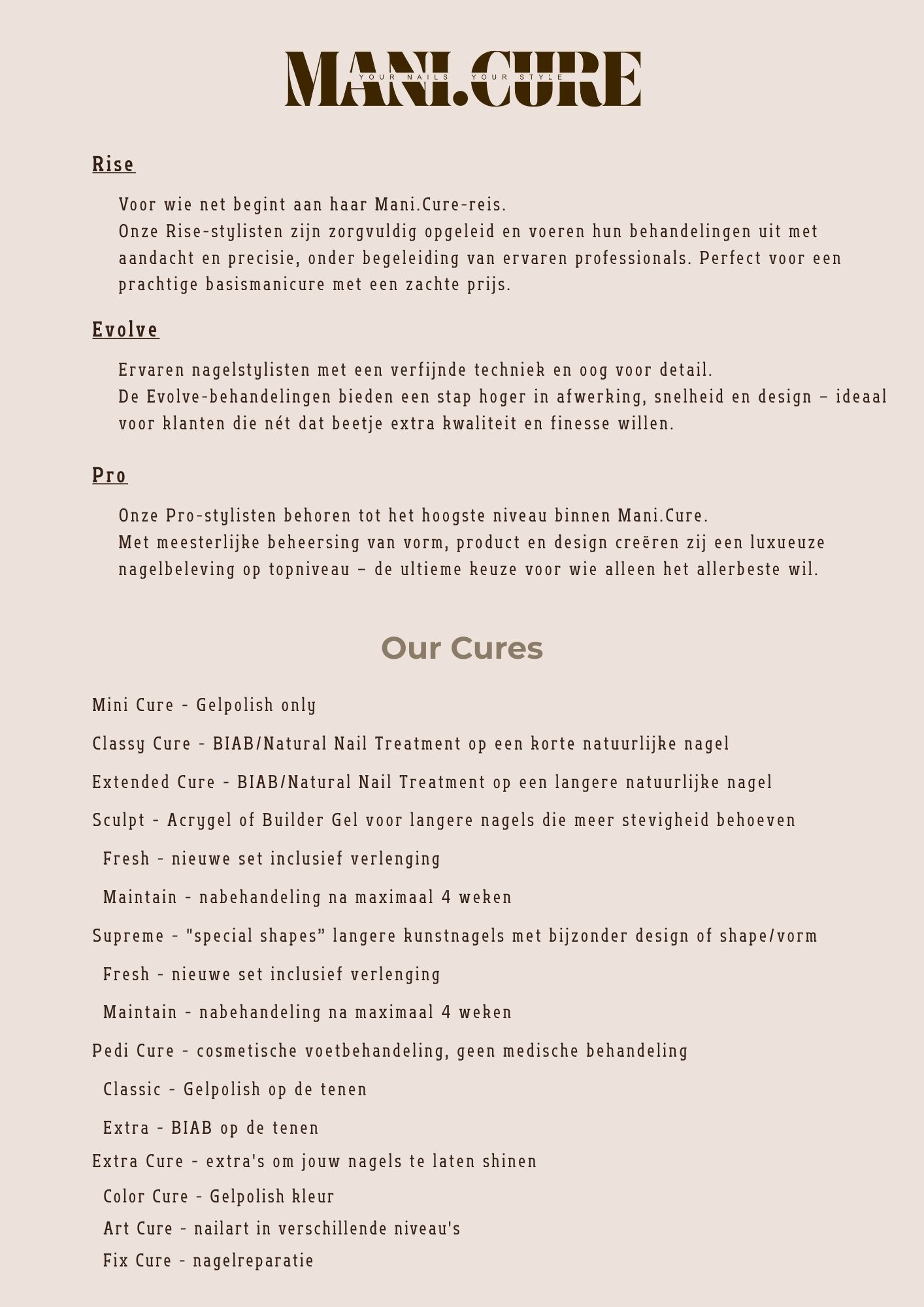Bij Mani.cure werken we met een uniek levelsysteem voor onze stylistes: RISE, EVOLVE en PRO.